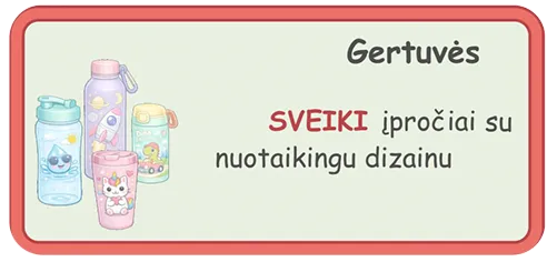 Sveikiems įpročiams ir savarankiškumui. Asmeninis dizainas padeda vaikui niekada nesupainioti savo gėrimo su kitais.